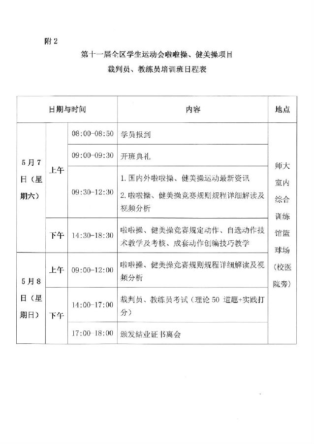 关于举办第十一届全区学生运动会啦啦操、健美操项目裁判员、教练员培训班的通知