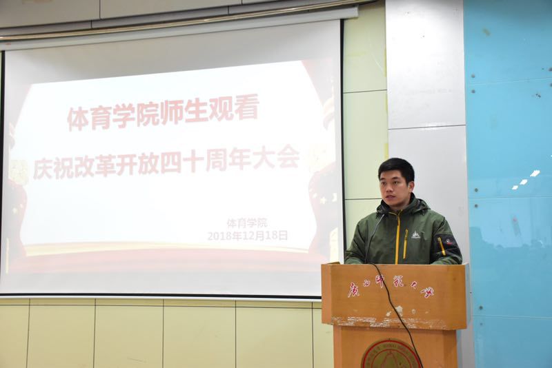 为庆祝改革开放四十周年,贯彻落实党中央最新文件精神。12月18日上午9时许,体育学院师生代表于503会议室集中观看庆祝改革开放四十周年直播大会。体育学院党委书记庞晓宁、分团委书记梁炳源携全体专兼职辅导员及优秀学生代表参与了此次活动。