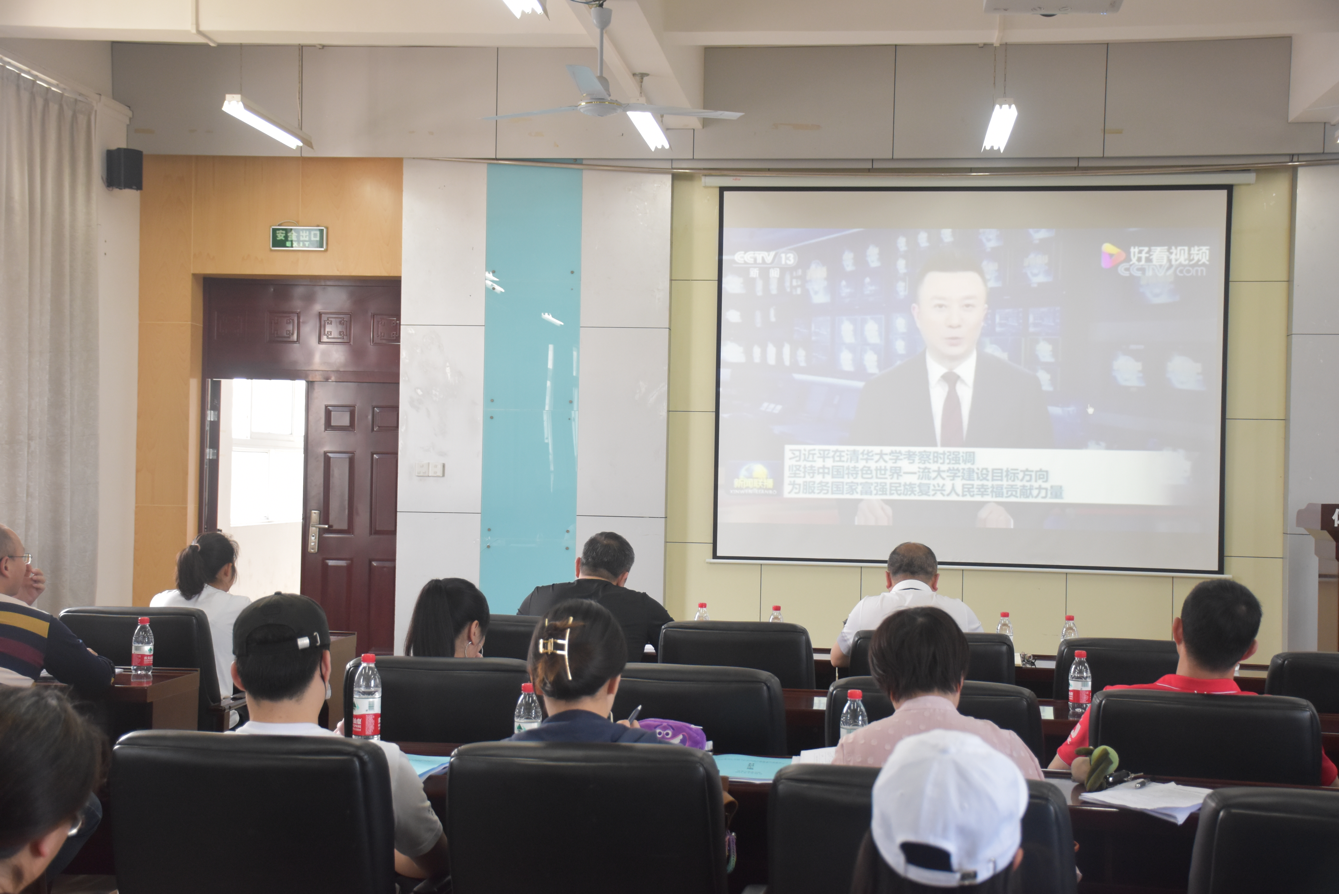首先,全体与会成员集体观看视频,学习习近平总书记在清华大学考察时的讲话精神。习近平总书记在清华大学110周年校庆来临之际前往考察,总书记在清华大学考察发表的重要讲话精神,是对教育工作的重要指示,教师是教育工作的中坚力量,没有高水平的师资队伍,就很难培养出高水平的创新人才,也很难产生高水平的创新成果。大学教师对学生承担着传授知识、培养能力、塑造正确人生观的职责。我们作为高校的教育工作者要成为大先生,做学生为学、为事、为人的示范,促进学生成长为全面发展的人。要研究真问题,着眼世界学术前沿和国家重大需求,致力于解决实际问题,善于学习新知识、新技术、新理论。要坚定信念,始终同党和人民站在一起,自觉做中国特色社会主义的坚定信仰者和忠实实践者。
