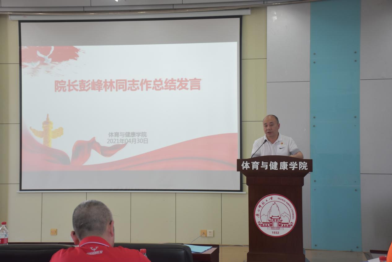 最后,院长、党委副书记彭峰林同志作总结发言中强调:一是要充分领会习近平总书记的讲话精神,将立德树人作为根本任务不断提高人才培养质量,充分发挥高校培养人才和服务社会发展的智库作用;二是立足学院“双一流”建设目标,定位高远,追求真理,服务国家战略和人类福祉,在服务中谋发展;三是要把学科建设作为学院发展的根基,早日构建中国特色的学术体系;四是把深化改革作为强大的动力,继续完善现代大学的治理体系;五是把党的建设作为坚强的保障,全面加强党建和思想政治工作。请与会的同志积极思考,为学院的发展建言献策,实现学院“十四五”建设目标和学院“双一流”建设目标。以优异的成绩为党的100周年贺礼。