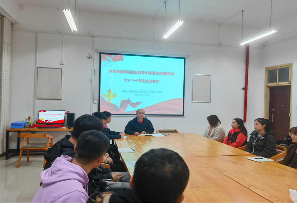 2021年是中国共产党诞生一百周年。一百年砥砺奋进,一百年风雨兼程,一百年光辉历程,一百年丰功伟绩。为推进党史学习和廉洁教育学习,2021年3月23日晚,体育与健康学院运动训练本科生党支部开展运动训练专业本科生党支部廉洁教育学习。