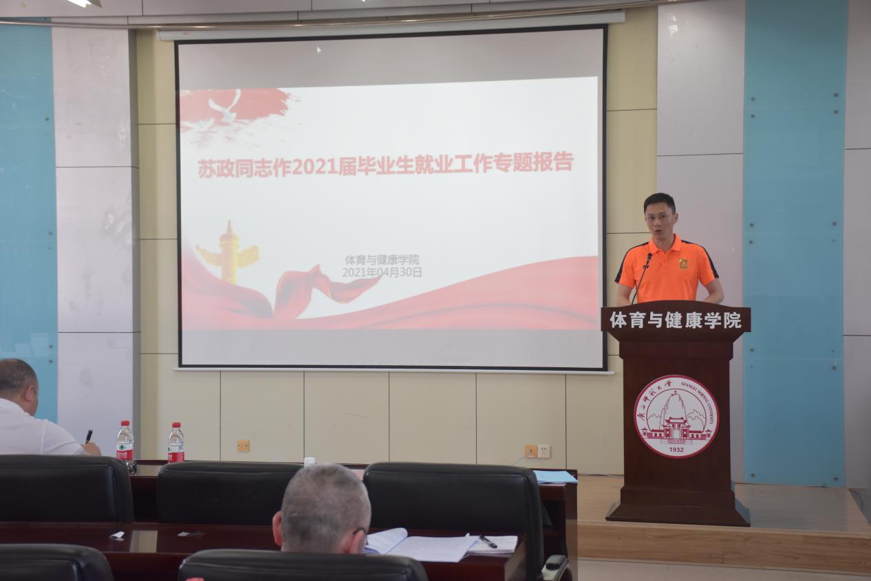 首先,党委副书记、纪委书记苏政同志作2021届毕业生就业创业工作专题汇报。苏政同志对我院现阶段我院2021届毕业生就业创业工作进行了汇报,并分析了学院2021届毕业生就业创业工作的难点及产生的原因,针对就业创业工作的难点提出了相应的解决办法。汇报的内容真实,反映的问题客观,提出的具体解决办法有效,是现阶段2021届毕业生就业创业工作的真实反馈,请各教研室、教工党支部扛起责任和担当,群策群力,进一步推动毕业生就业创业工作更好的发展,实现就业率新的提升。