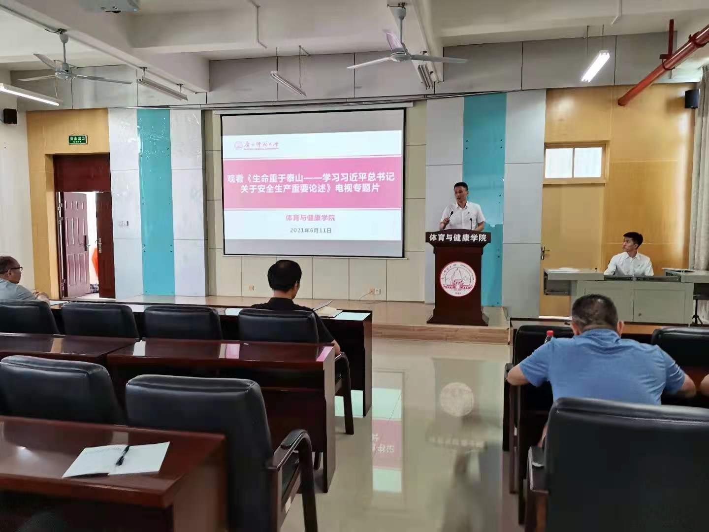为进一步提高安全防范意识,引导广大教职员工深入学习领会习近平总书记关于安全生产的重要论述,树牢安全发展理念,切实把思想和行动统一到中央决策部署上来。根据《中央宣传部国务院安委会 应急管理部关于组织观看学习<生命重于泰山——学习习近平总书记关于安全生产重要论述>电视专题片的通知》要求和学校相关安排,结合学院实际,体育与健康学院于2021年6月11日下午16:30,在学院503室,组织全体教职员工集中观看《生命重于泰山——学习习近平总书记关于安全生产重要论述》电视专题片。