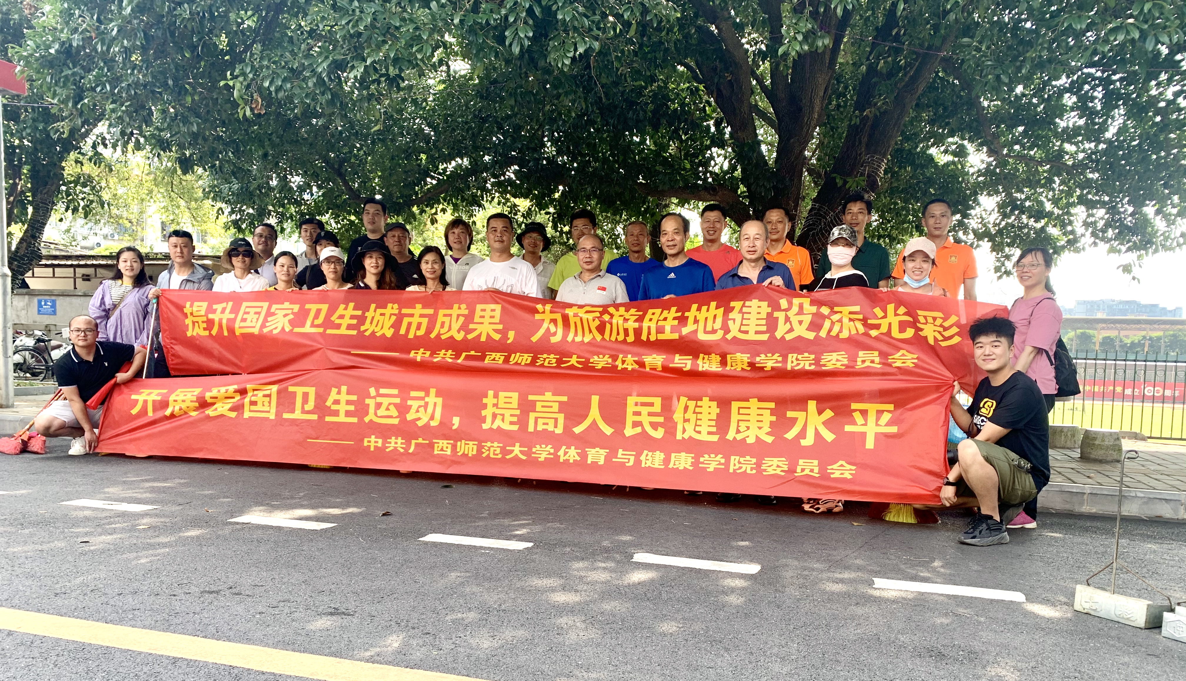 “开展爱国卫生运动,提高人民健康水平。”8月2日下午,体育与健康学院党委为落实桂林市全国文明城市常态化建设包联制度,根据学校党委关于《广西师范大学全国文明校园常态化建设工作实施方案》的通知精神要求,积极配合推进文明城市常态化建设工作,学院党委领导班子带领全体教职工党员,在育才路至普陀路主次干道路段开展环境卫生清扫志愿服务活动。