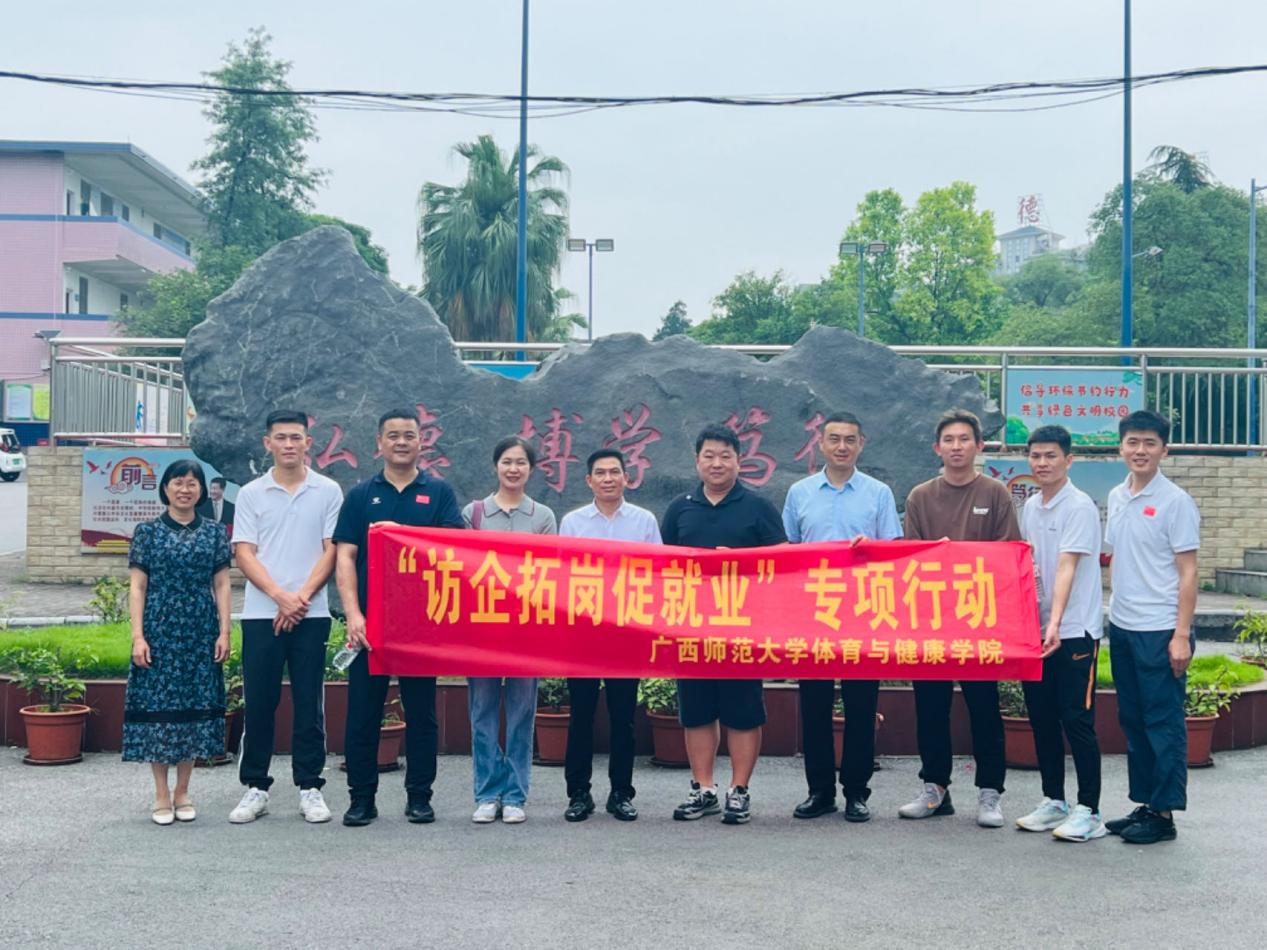 为深入贯彻落实党中央、教育部关于开展“访企拓岗促就业”专项行动的工作部署和要求,助力我院2024届毕业生高质量充分就业。2024年5月30日,体育与健康学院党委书记带队前往桂林市第八中学开展“访企拓岗促就业”专项行动,并开展交流座谈。