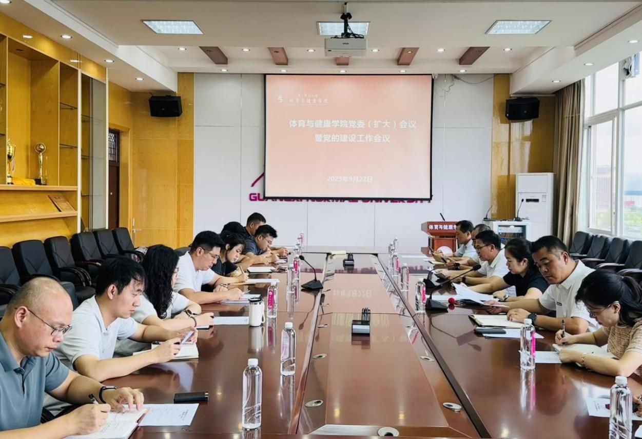 9月22日,体育与健康学院党委在雁山校区体育楼516会议室召开党委(扩大)会议暨党的建设工作会议。会议由学院党委书记向先孟主持,学院党委委员、党政领导班子成员、专职组织员、各党支部书记及办公室副主任参加会议。
