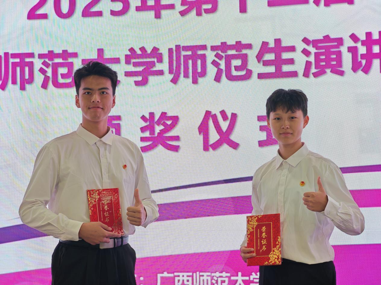 此次成绩是对两位同学的肯定,也是我院师范生培养质量的体现。期待靳璐瑶在区赛中再创佳绩,也希望全体同学以他们为榜样,坚定从教信念,锤炼专业能力,为教育强国贡献青春力量!