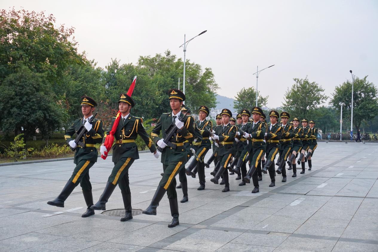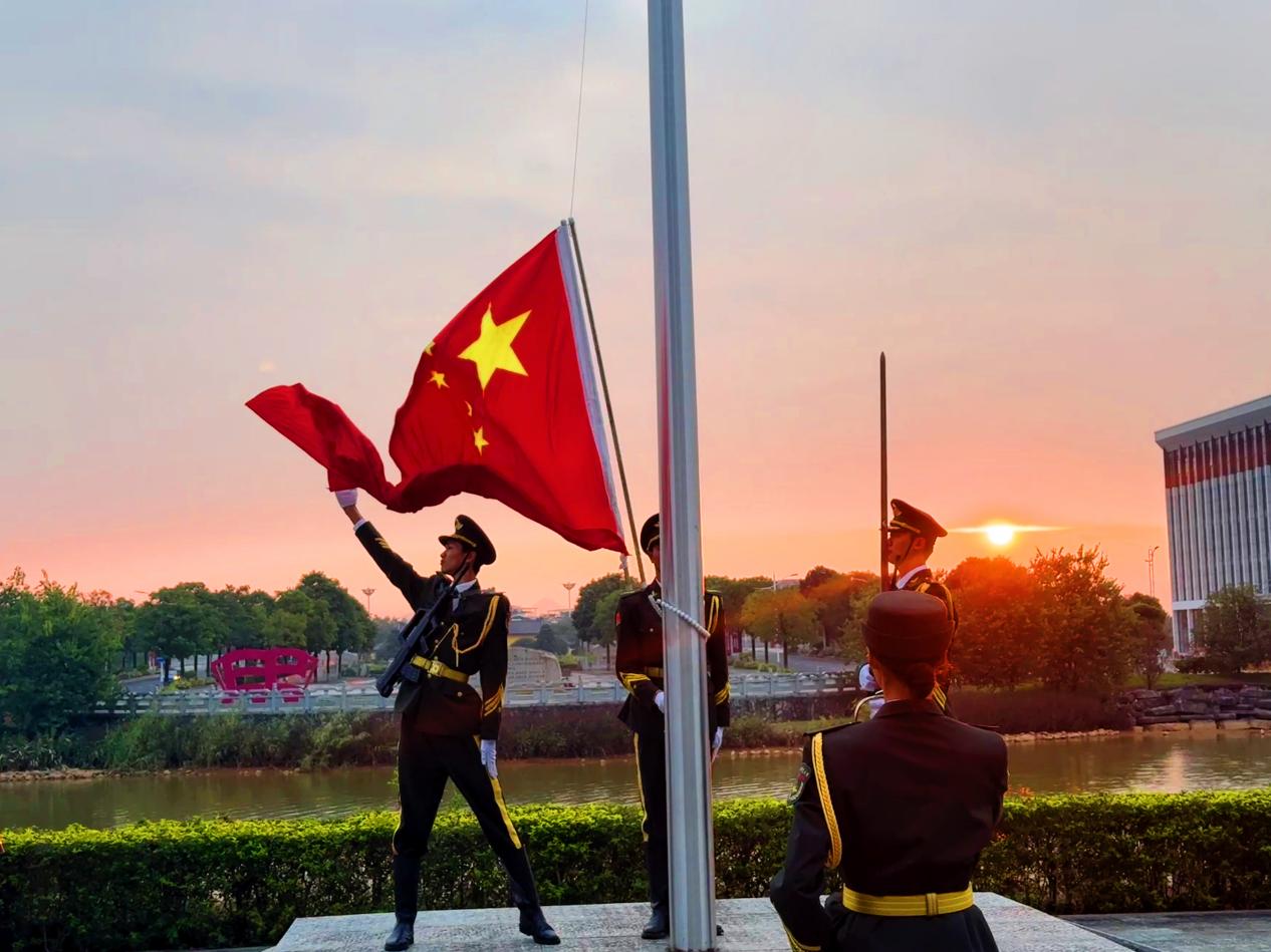 仪式上,国旗护卫队护送国旗进场,国歌奏响,五星红旗冉冉升起,全体师生肃立行注目礼。