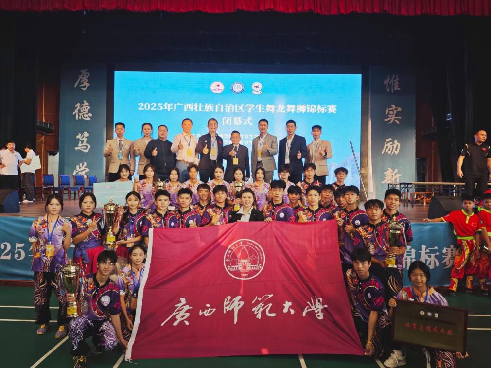 作为广西学校体育卫生艺术学会龙狮分会主席单位,我校还通过办赛事、促校际交流、培专业师资,推动龙狮运动在广西校园普及。我校不少毕业生扎根各地高校及中小学,成为推动广西学校龙狮运动可持续传承的中流砥柱,为广西铸牢中华民族共同体意识示范区建设贡献出师大的力量。