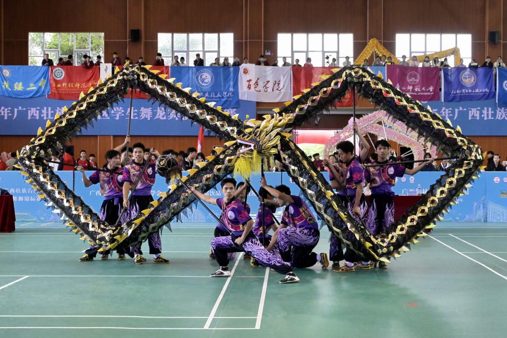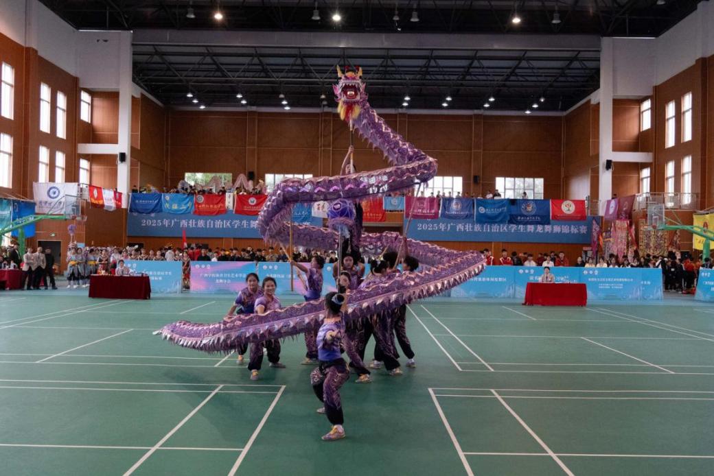 11 月 5日上午,由广西学校体育卫生艺术学会主办、龙狮分会执行的2025年广西壮族自治区学生舞龙舞狮锦标赛在桂林理工大学南宁分校开幕。作为广西学生龙狮运动年度盛会,该赛事吸引了全区35所学校500余名健儿同台竞技。