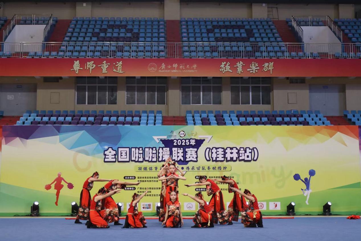 千年山水邂逅青春活力,诗画桂林再添运动华章。2025年11月8日,备受瞩目的全国啦啦操联赛(桂林站)在广西师范大学雁山校区体育馆开幕。本次活动既是高水平体育竞技的舞台,更是校地协同、文体融合的生动实践。