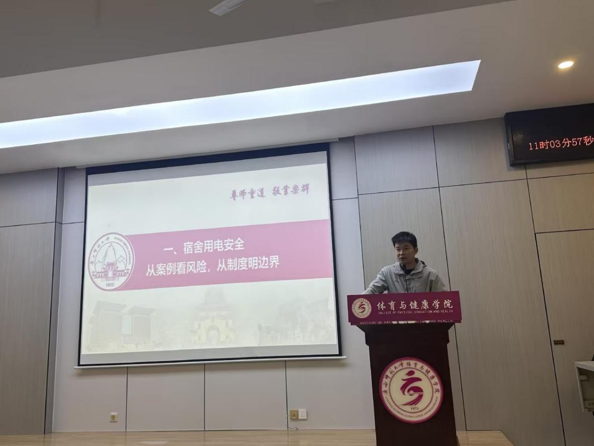 为贯彻落实校园消防安全工作部署,践行立德树人根本任务,保障师生人身财产安全,近日,体育与健康学院以“守好安全底线,共建文明校园”为主题,面向各年级、覆盖全体本科生与研究生,召开消防安全教育年级例会,层层压实安全责任,筑牢校园安全思想防线。