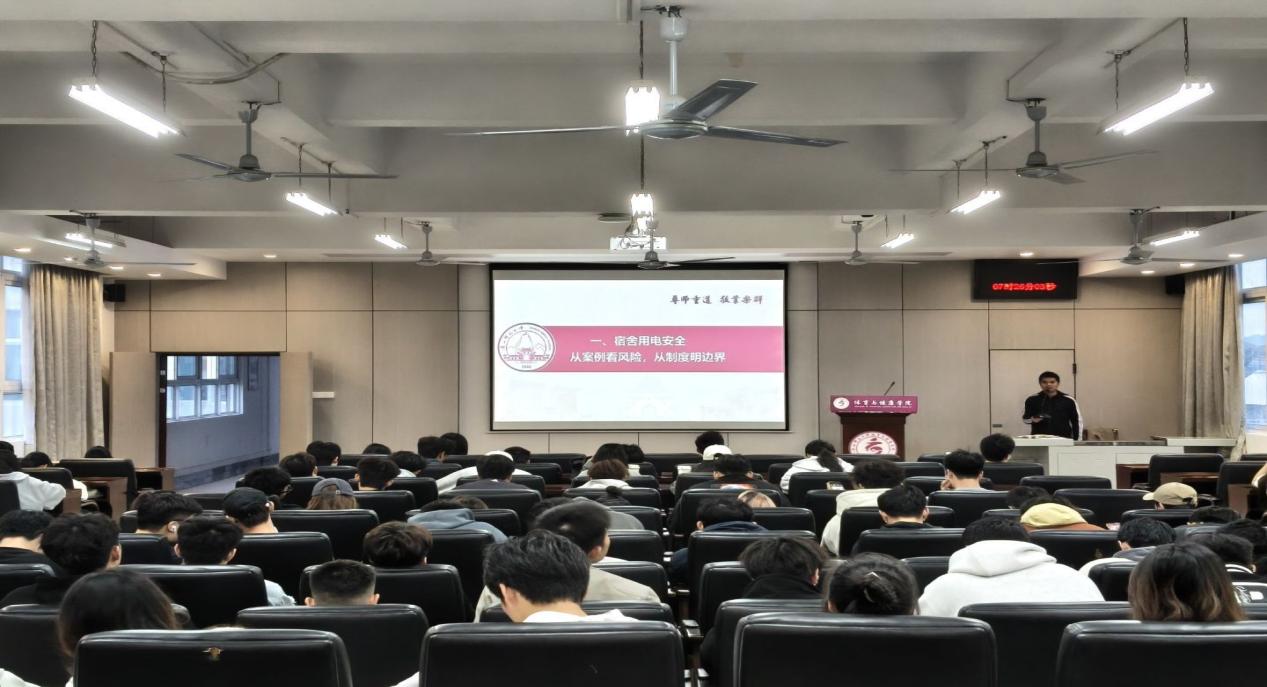 学院坚持“教育为先、全员覆盖”原则,各年级辅导员结合学生特点,针对性开展专题教育。会议聚焦用电用火核心安全风险,通过解读消防法规、剖析典型火灾案例、展示违规用电危害等形式,系统普及消防安全知识。从日常宿舍用电规范到初期火灾处置技巧,从制度层面明确安全边界到实践层面强化防范意识,引导学生深刻认识安全隐患的严重性,切实提升自防自救能力。
