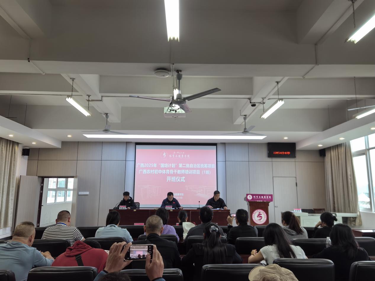 为落实自治区教育厅提升中小学体育教师专业能力要求,加强农村初中体育教师队伍建设、推动校园排球普及,2025年“国培计划”第二批自治区统筹项目——广西农村初中排球骨干教师培训项目1班于11月10日在广西师范大学体育与健康学院顺利开班。学院副院长(主持行政工作)姚绩伟教授,副院长谢伟教授,及来自广西各市县的48名农村初中体育骨干教师参会,开班仪式由培训部主任曾超龙主持。