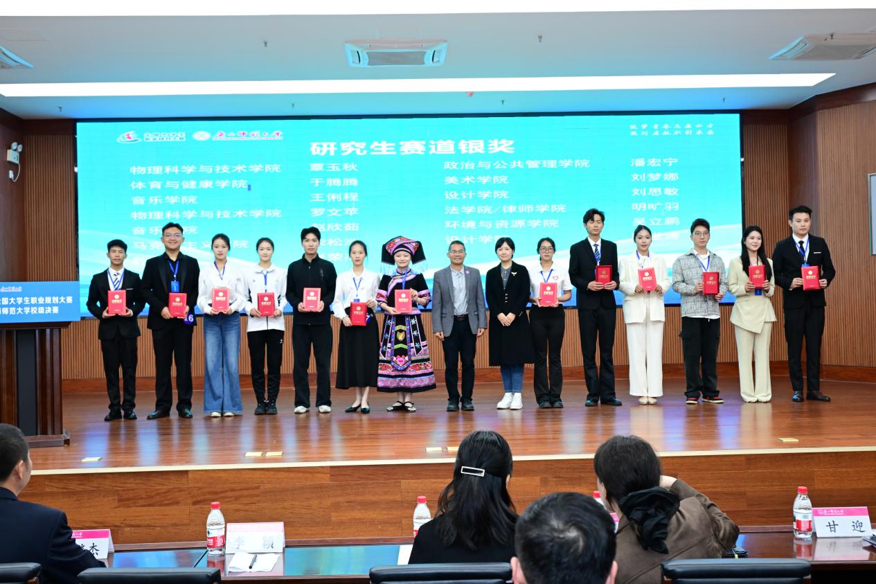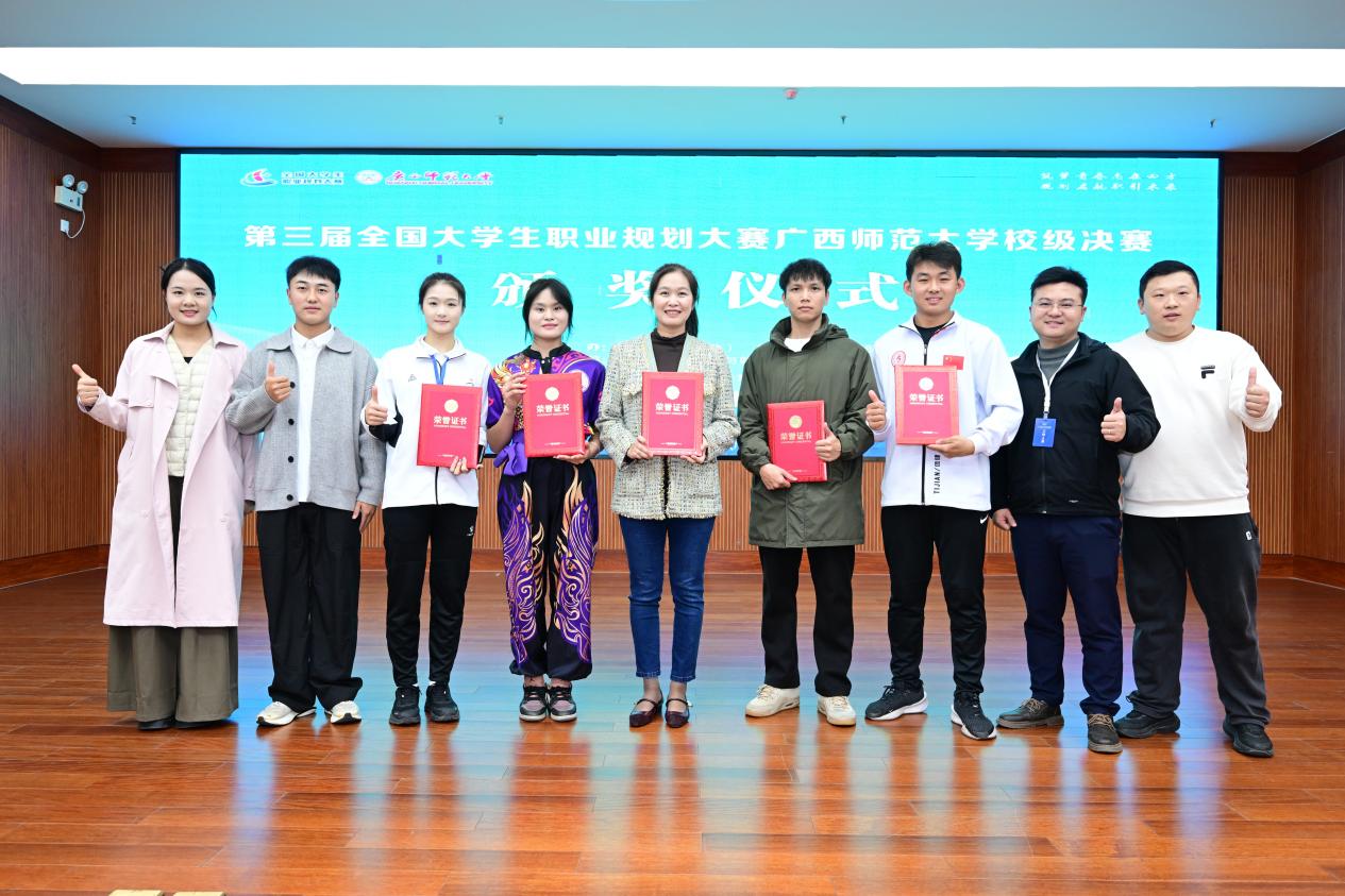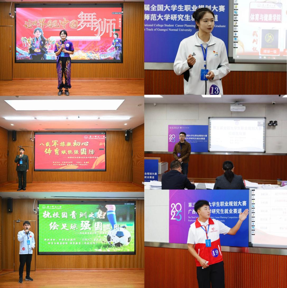 为持续深化大学生生涯教育与就业指导工作,切实提升学生职业规划能力与就业核心竞争力,11月30日,广西师范大学在育才校区举办第三届全国大学生职业规划大赛校级决赛,体育与健康学院共有6名学生入围校级决赛,参赛选手凭借扎实的专业素养、清晰的职业规划与出色的现场表现,荣获1金3银2铜的优异成绩,再度彰显学院在人才培养与职业规划教育领域的丰硕成果。