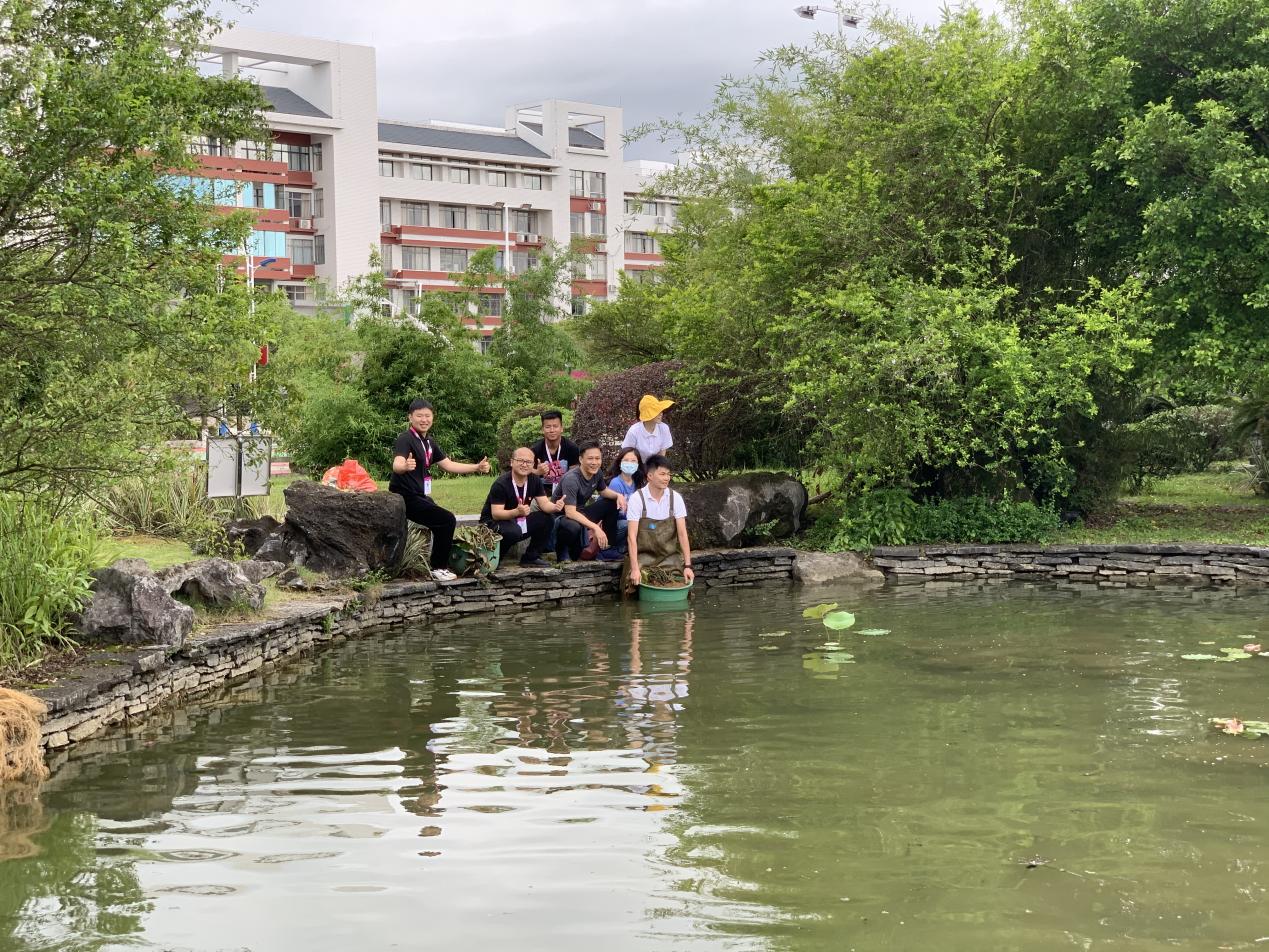 体育与健康学院行政党支部与后勤集团教工党支部的党员同志齐上手,共同在雁山校区桃园餐厅旁荷花池开展廉洁教育活动,以实际行动绿化校园环境,推进生态文明建设精神。