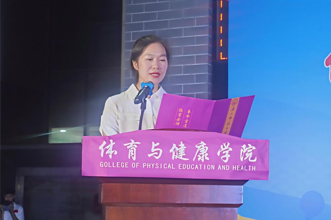 姚绩伟副院长(主持行政全面工作)从历史沿革、专业实力、教学平台、场馆设施、师资队伍及人才培养成果等方面,介绍学院作为“广西体育冠军摇篮”的优势,寄语新生既要“抢好开局”“做单项冠军”,更要“跑好全程”“做全能选手”,在团队协作中追求“更快乐更健康更善良”。