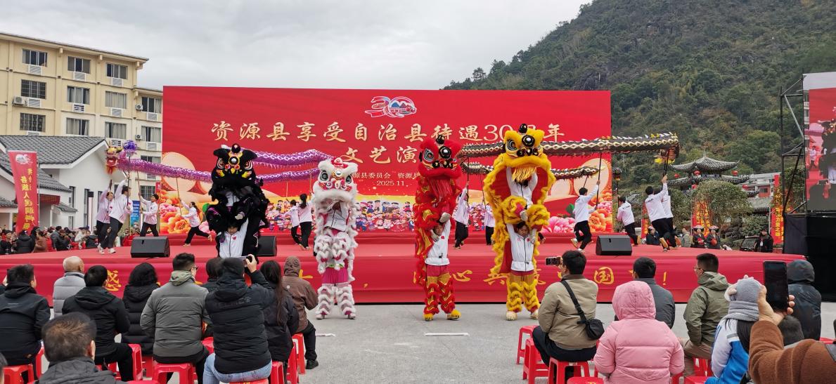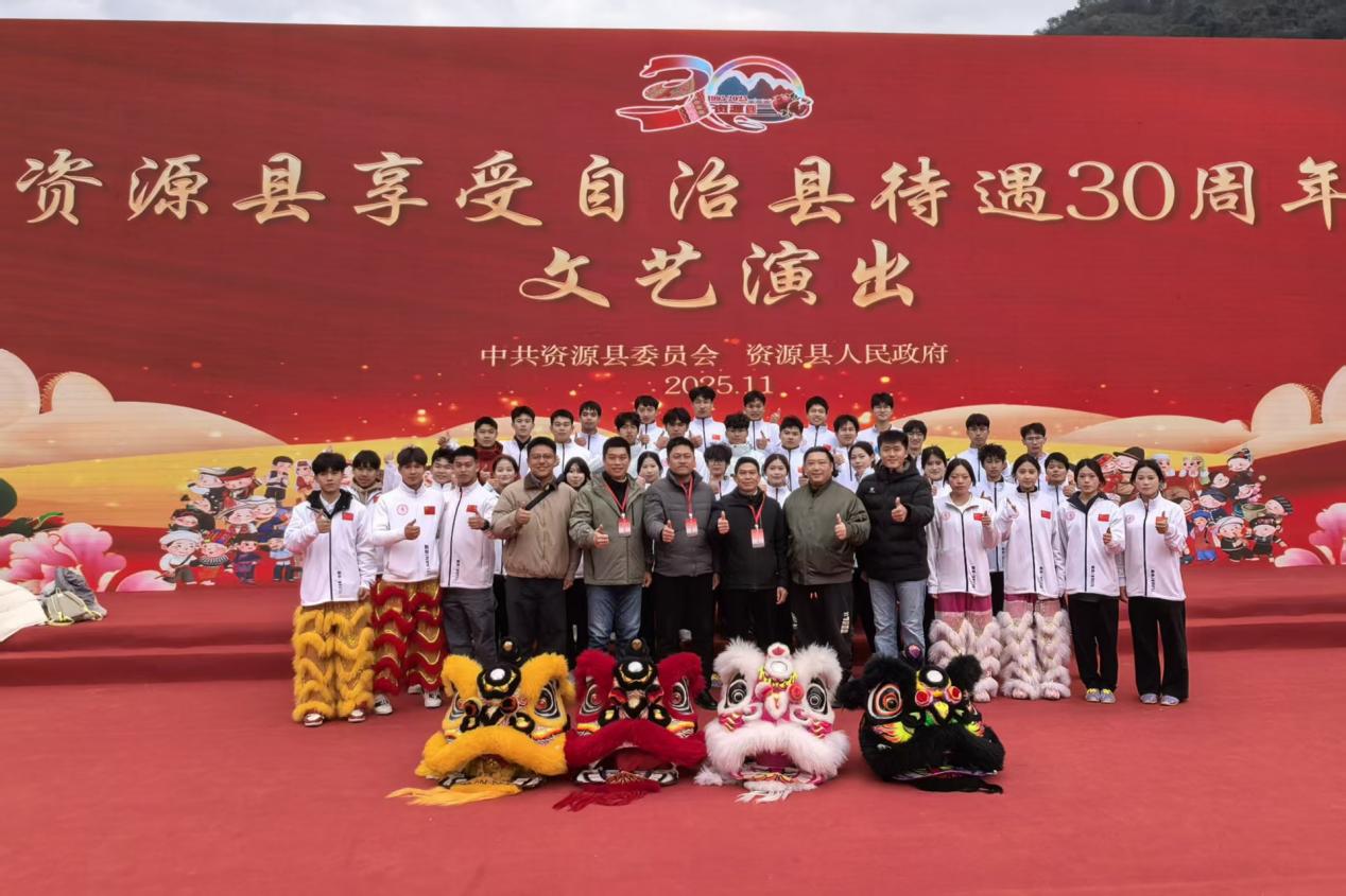 11月18日,资源县享受自治县待遇30周年文艺演出隆重举行,体育与健康学院受邀参演。学院党委主要负责人带队,组织参演队伍全力投入,以民族传统体育为载体,在庆典舞台上搭建起民族团结进步的文化桥梁,彰显立德树人的体育担当。