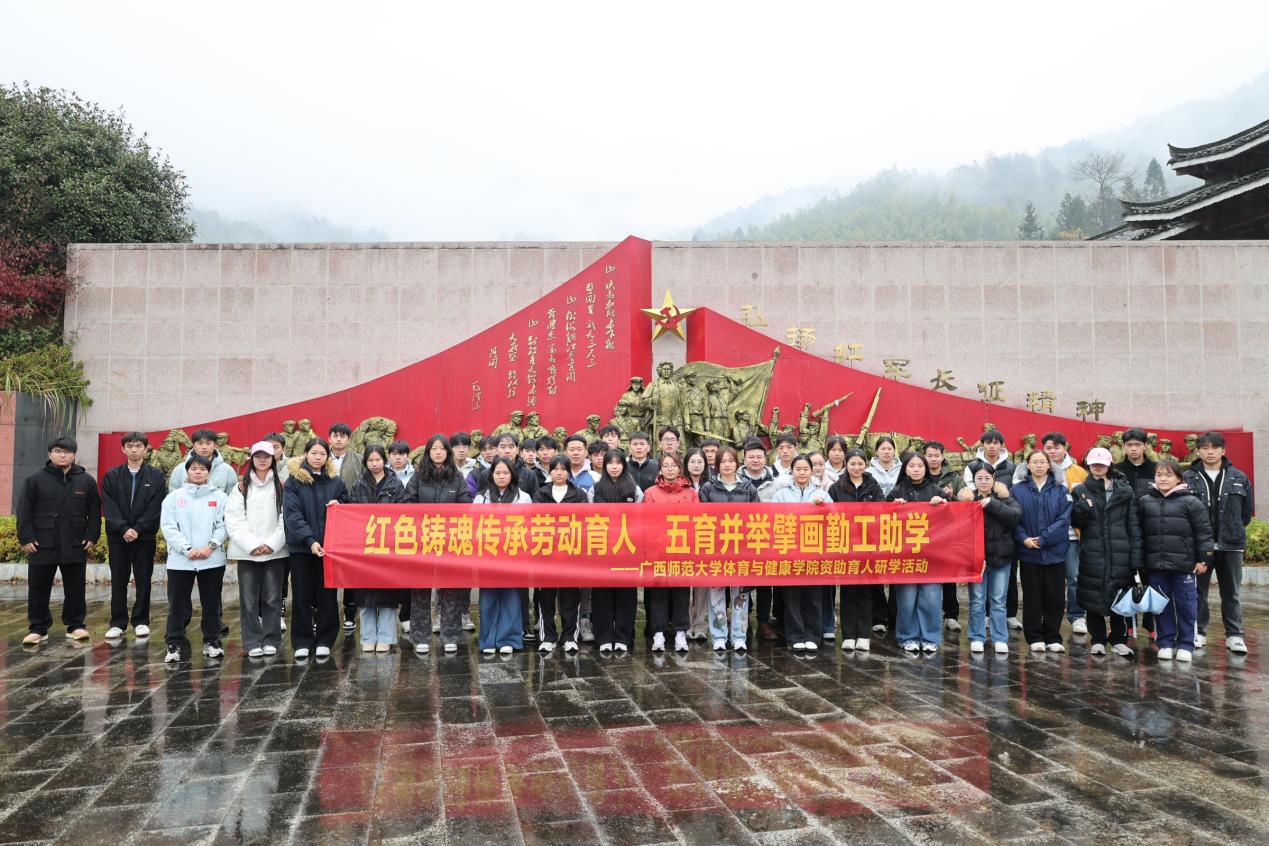 为深入贯彻落实“五育并举”教育方针,推动红色文化与劳动教育深度融合,切实提升资助育人的实效性与引领性,2025年12月6日至7日,广西师范大学体育与健康学院组织勤工助学学生代表赴桂林资源县塘洞村,开展“红色铸魂传承劳动育人 五育并举擘画勤工助学”主题研学实践活动。