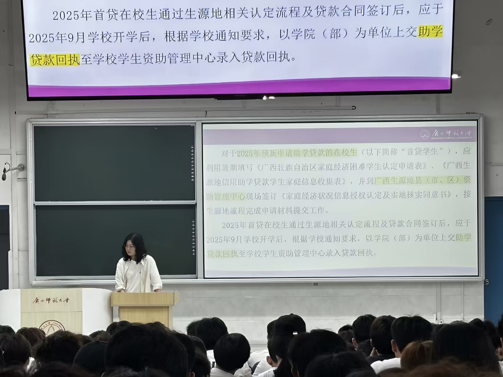 学院坚持分层分类、精准施策,面向全体本科生扎实推进政策宣讲与诚信教育。针对各年级学生特点,开展生源地助学贷款政策解读、毕业确认流程指导等主题班会,确保政策宣传全覆盖、毕业确认无遗漏,累计服务学生近500人次,实现“政策宣讲率、毕业确认完成率、答疑满意度”三个百分百,确保资助政策落地见效。